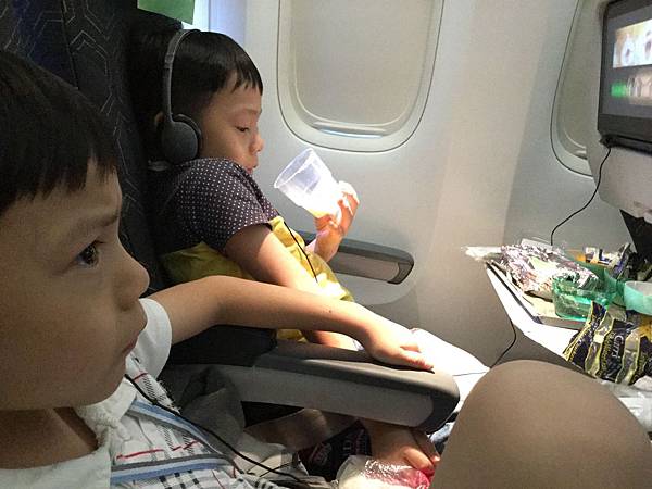 事後證明我錯了。。搭飛機前,機長預告,將遭遇兩股亂流。。。。。去程約12.5小時。。。。飛機一直抖。。。。真嚇人。。。。但雙胞胎還是很安心的照吃照睡。。。。。還是不懂的人比較ㄢㄒ